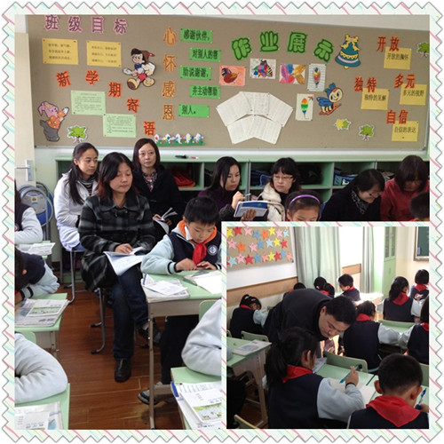 首先由参与校“三奖”评比的徐立兵老师在三(3)班上了一节《植树问题》。在课堂上徐老师充分利用学生已有资源——手,展开学习。当学生手竖起来的时候,解决植树问题、敲钟问题;当学生手横过来的时候,解决上楼梯问题。学生兴趣盎然在情景贯穿中不知不觉建构知识,运用知识。